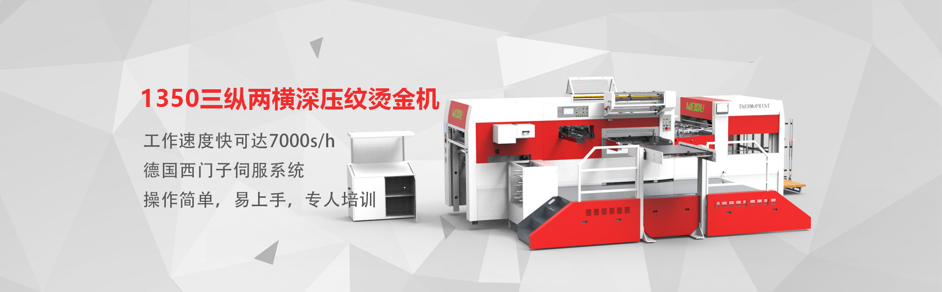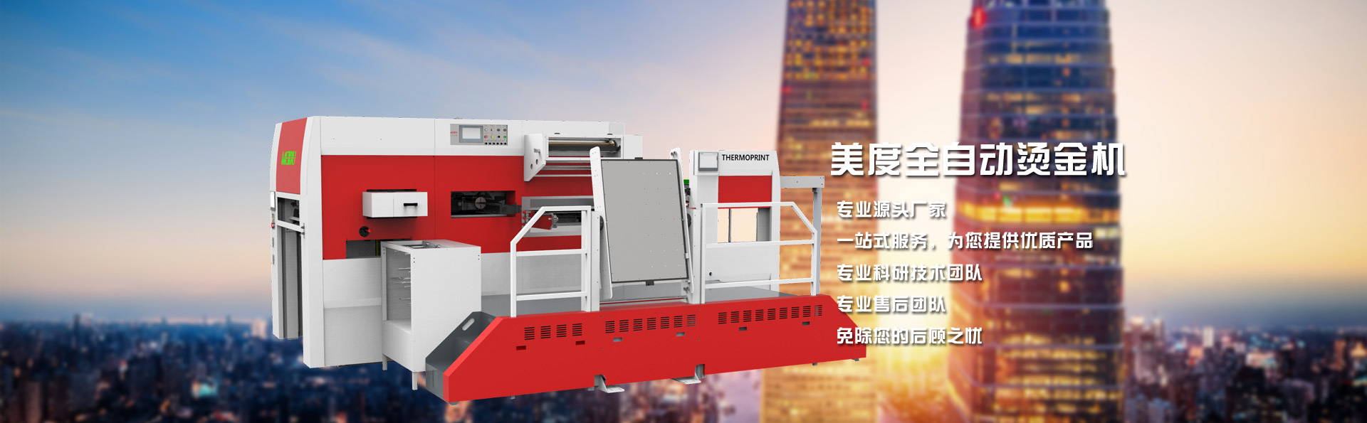 山東美度印刷設備有限公司是一家從事機械研究和制造的企業,主要產品包括全自動平壓平三縱燙金機、全自動平壓平三縱兩橫燙金機、全自動平壓平深壓紋模切機、全自動平壓平深壓紋燙金機、全自動平壓平模切機等系列產品。經過多年的發展,公司現已擁有多名的工業研發設計人員、經驗豐富的生產安裝人員及嚴謹認真的質量檢驗人員,從外購件檢驗、零部件加工、整機裝配、出廠檢驗等各個流程均有嚴格質量保證,從而保障了所生產設備的品質。 ??????公司本著以質量求生存、以科技創新求發展的理念,以滿足客戶需求為宗旨,為客戶節約人力資源和原材料為目的,并提供生產咨詢、技術支持等服務······